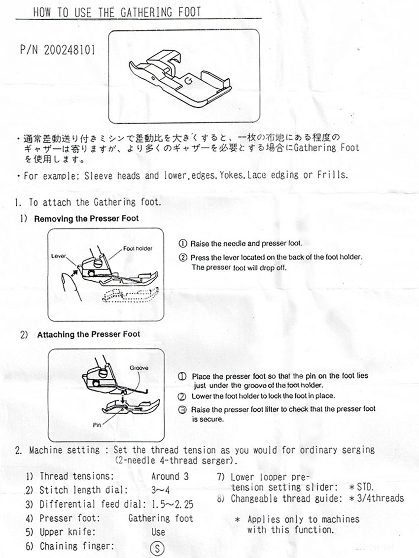 用於車縫細褶使用。