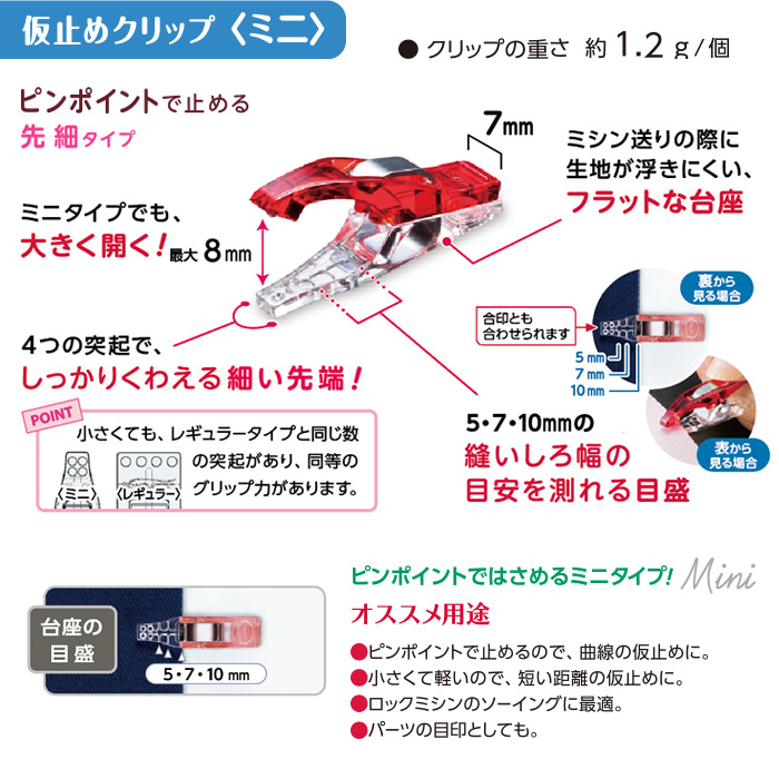 夾子的最大開口8mm,並附有5、7、10mm的縫份刻度!