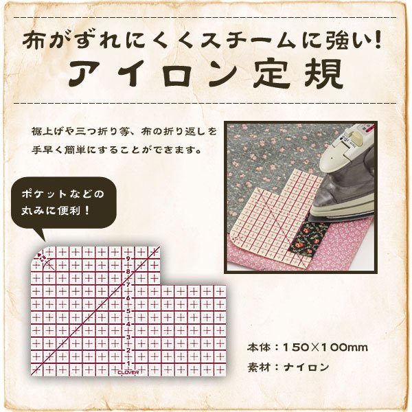 Clover 可樂牌 缝份燙斗定規尺(口袋折角) 熨斗用 止滑 定規尺 25-057