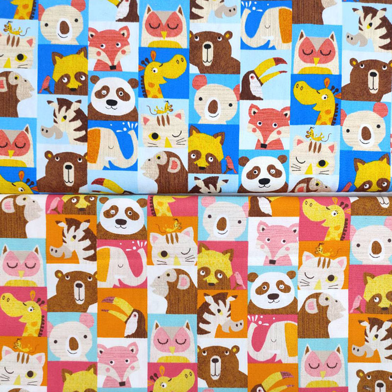 日本進口〈棉布〉彩色格子 動物世界 布料 (共2色)