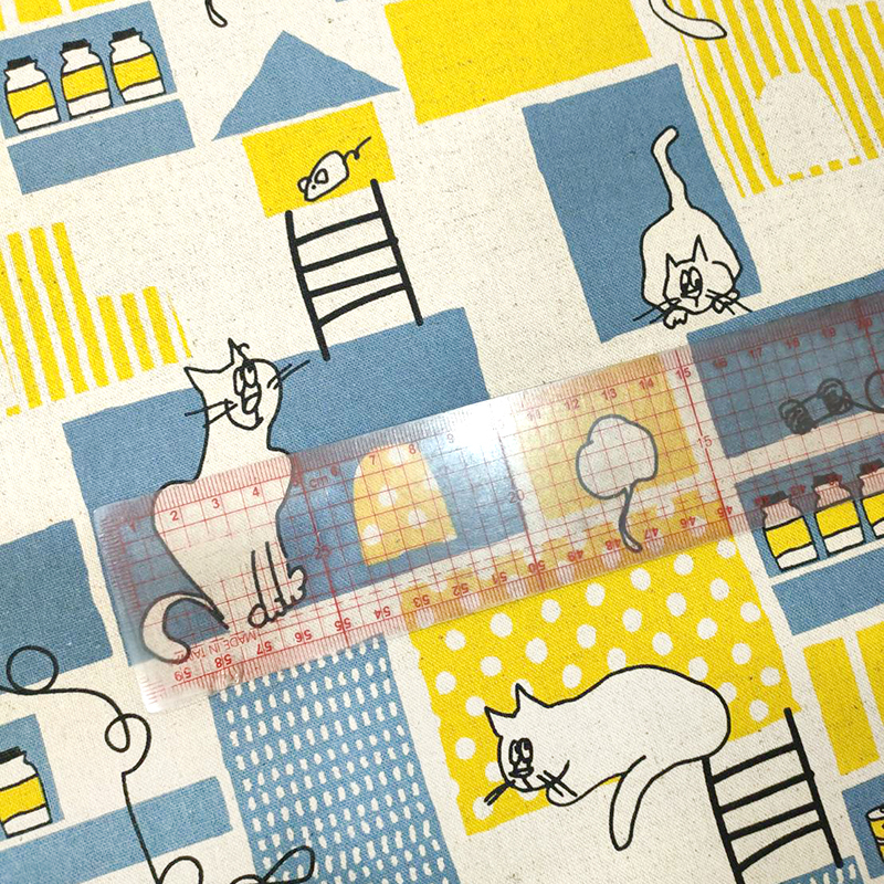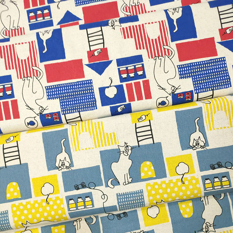 日本進口〈棉麻布〉插圖系列-貓捉老鼠 共2色 布料