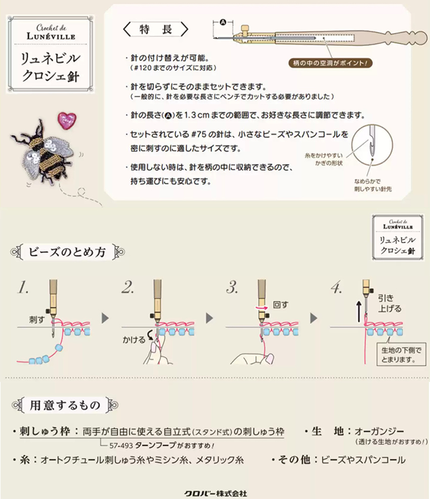 ※法式刺繡鉤針的木柄是職人之手加工,尺寸及形狀會有些許不同