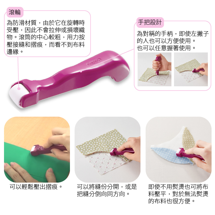 2.由於滾筒的中心較粗,因此可以用力按壓接縫和摺痕,而看不到布料邊緣。