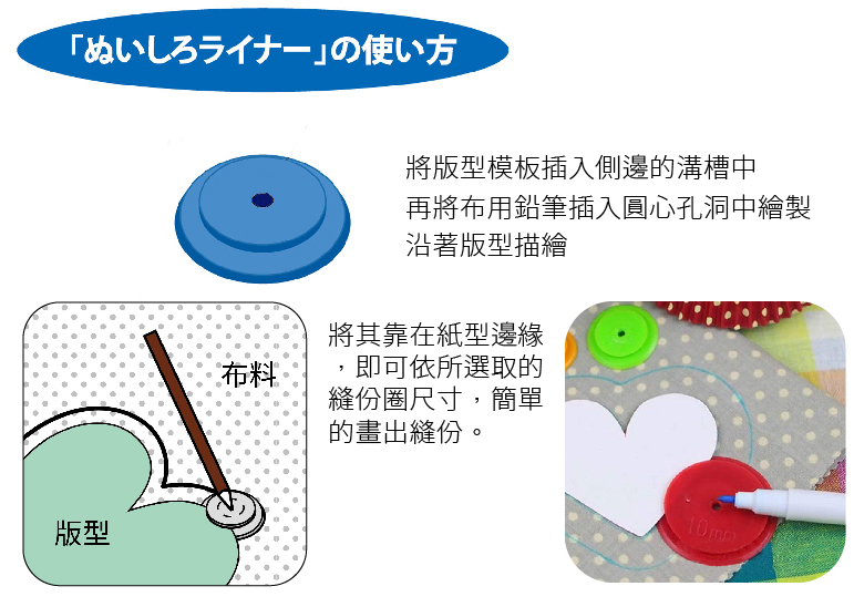 ●能夠沿著曲面的版型繪製等寬的縫份(厚度0.6公分內)
