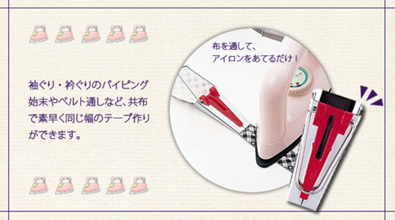 方便的滾邊器,瞬間把布料轉變成滾邊條,輕鬆完成布邊的處理,快速簡單地製作出喜愛花樣布條的工具,用布製作出同樣的幅度的布條。