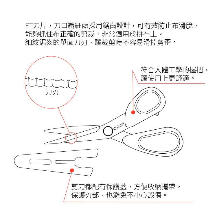 Clover 可樂牌 防逃防滑 布藝用剪刀 36-663.36-664 (17/21cm)