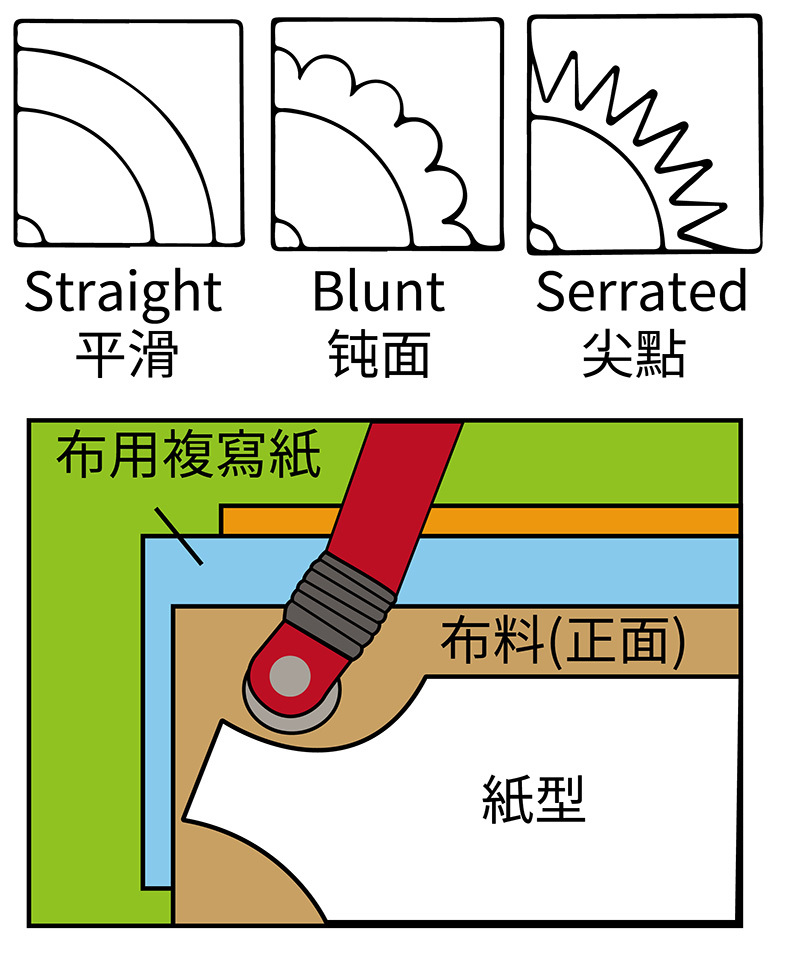 不用粉土筆或水消筆做記號,也可輕鬆壓線。