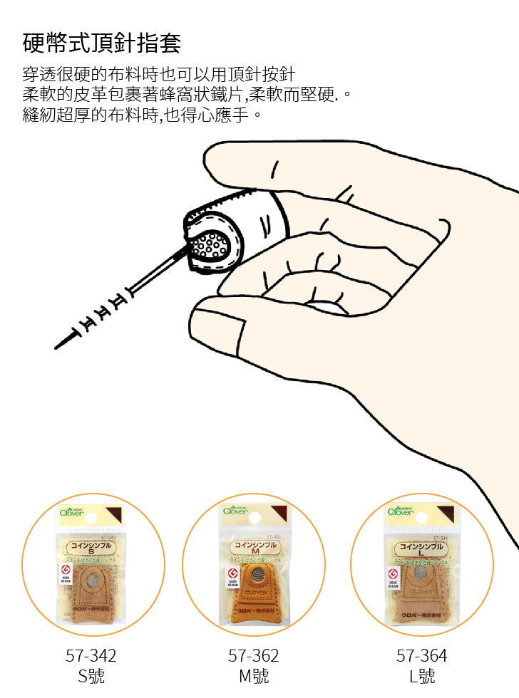 Clover 可樂牌 優質厚牛皮 鐵片頂針指套 (S/M/L) 57-342.57-362.57-344