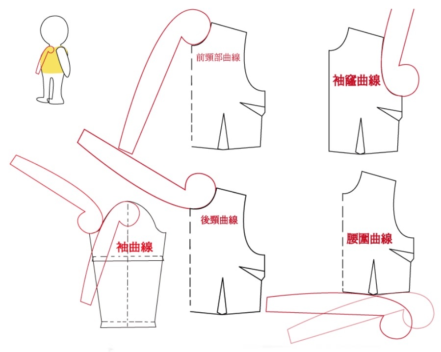 記號孔洞方便標示做記號可製作前頸部曲線、袖攏曲線、袖曲線、後頸曲線、腰圍曲線,標示超方便。