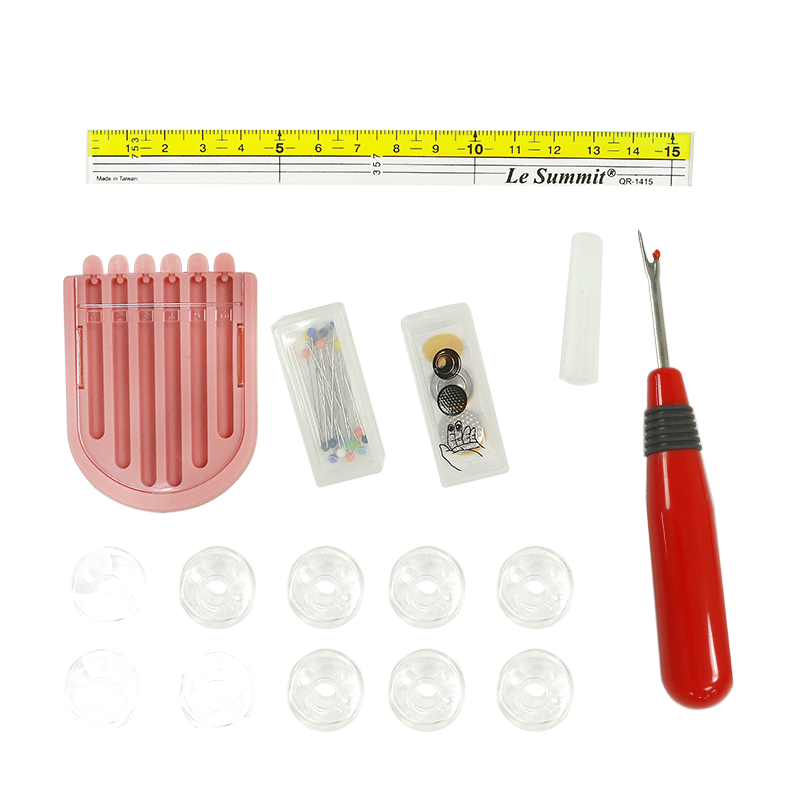 針盒組 (梭子 收納針盒 頂針器 珠針 拆線器 尺)