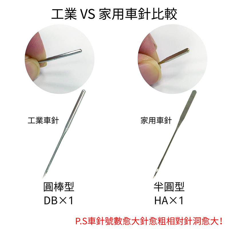 #16號車針(100/16):選用粗車針車縫厚布料,不使車針斷裂。如帆布