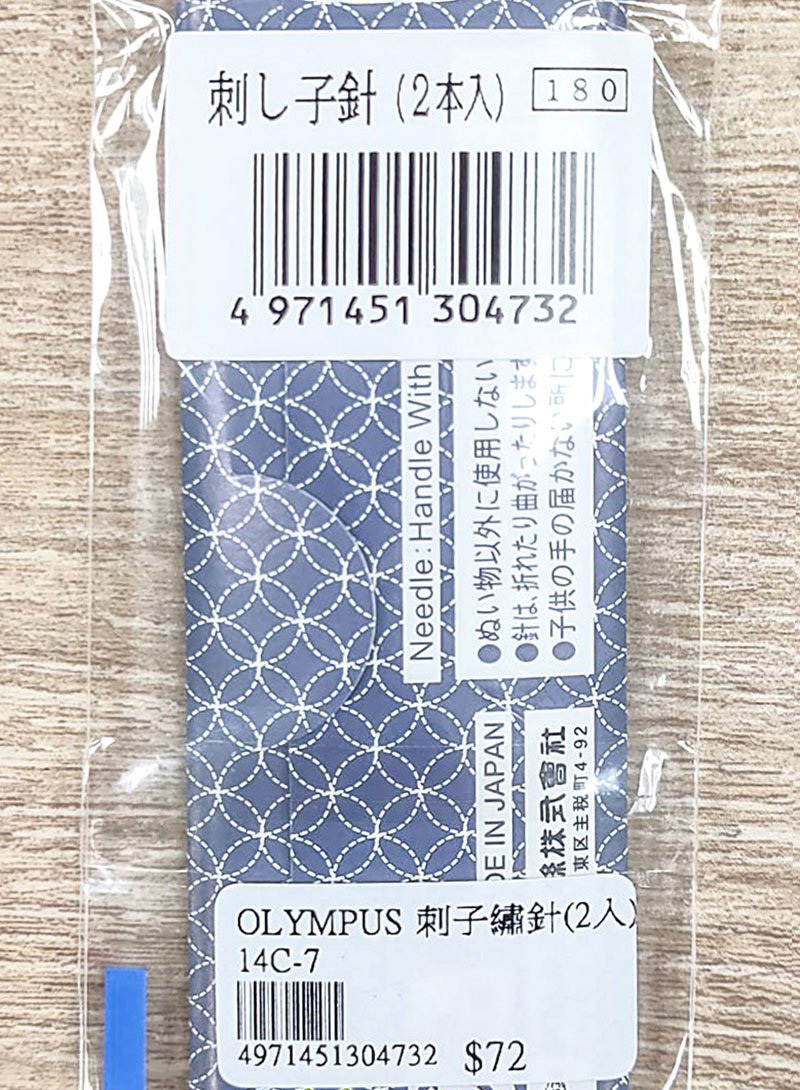 日本 Olympus 奧林巴斯 刺子繡針 刺し子針(大小2本セット)