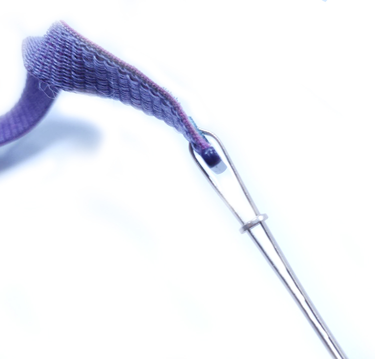 用途:將鬆緊帶的一端夾住,再推緊那個環這樣就夾住鬆緊帶了,然後穿帶,穿好後放鬆這個環即可。