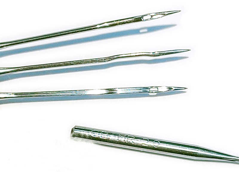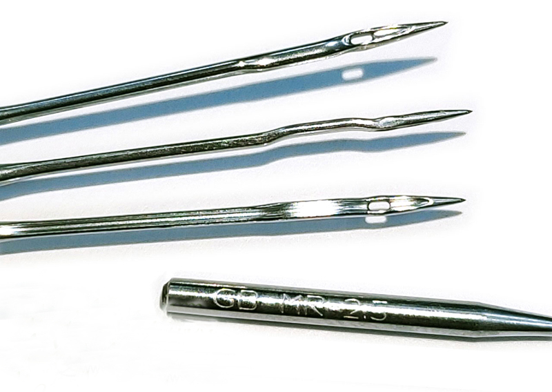 使用縫紉機時,請檢查車針針端是否變型或折斷有時人的肉眼無法辨識車針是否變鈍,若車縫時產生跳針,勾紗等狀況,均是不良的車針造成。