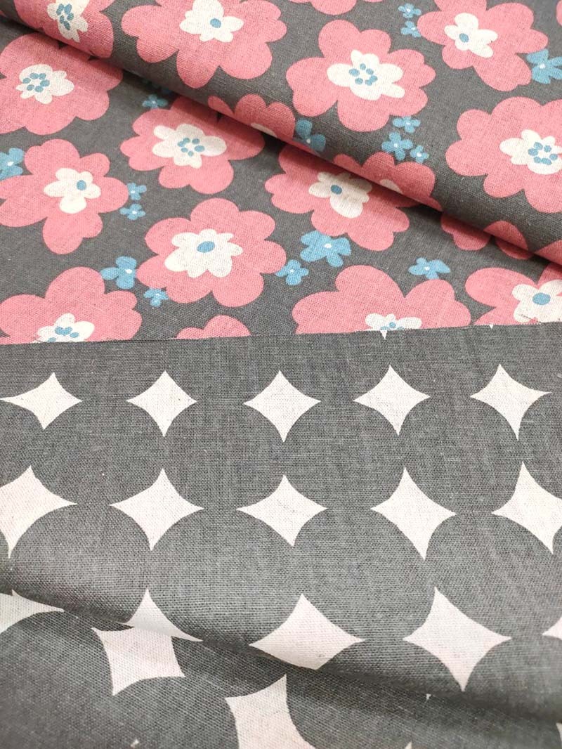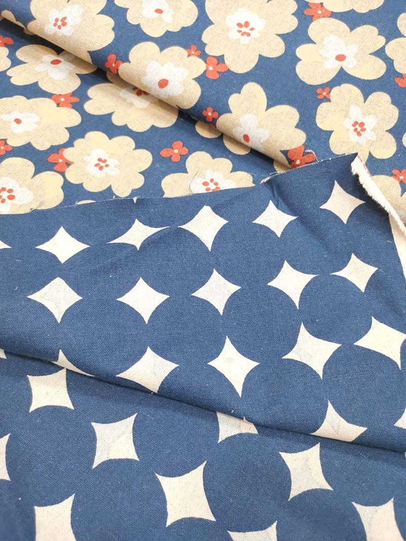 日本進口〈棉麻布〉花兒朵朵開 雙面 大圓點 布料 共2色