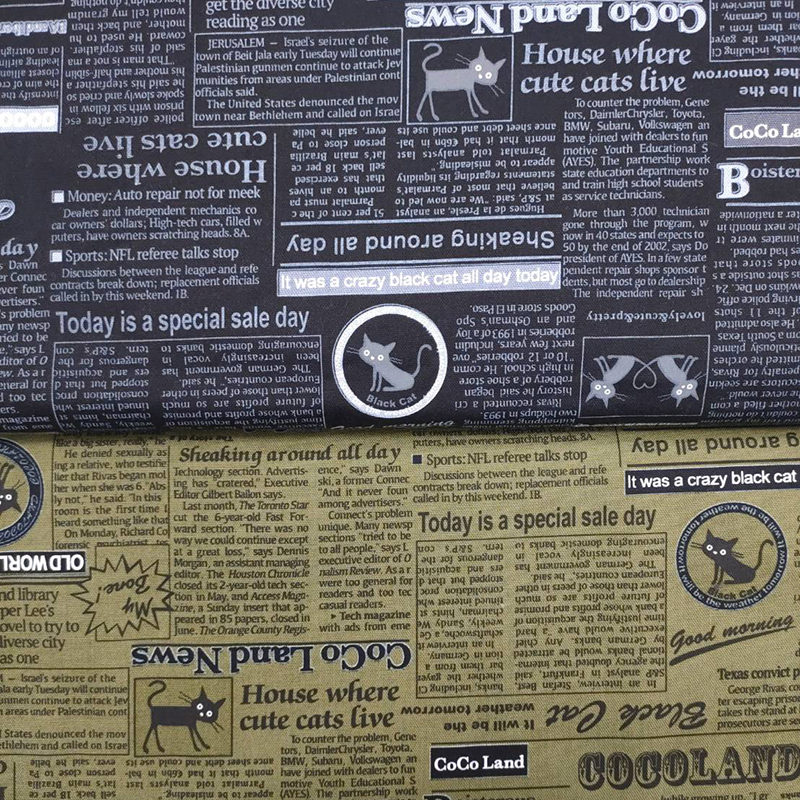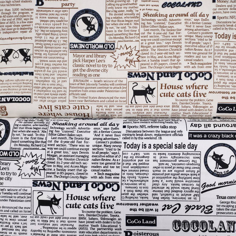 日本進口 〈棉布〉貓咪 報紙 文字 英文 布料 (共4色 )